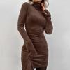 Elegancka Srebrna Welurowa Dopasowana Sukienka z Wysokim Dekoltem - Moda Jesień 2024 — kup artykuł online z bezpłatną dostawą na cały świat!