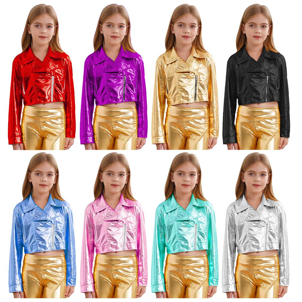 Unisex Dziecięca Metaliczna Kurtka na Zamek Kołnierz Klapowy Długi Rękaw Okrycie Wierzchnie Kurtka do Jazdy na Motocyklu Hip Hopu Jazzu Tańca — kup artykuł online z bezpłatną dostawą na cały świat!