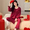 Red Newlywed Couple Pajama Set: Men's & Women's Long Sleeve Cotton Bridal Homewear for Spring and Autumn