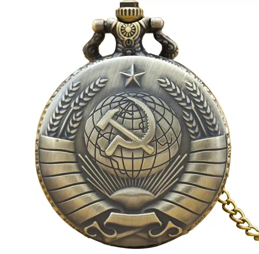Duży dwukolorowy zegarek kieszonkowy z młotem i sierpem, wytłaczany, pięcioramienna gwiazda i zegarek kieszonkowy z uchem — kup artykuł online z bezpłatną dostawą na cały świat!