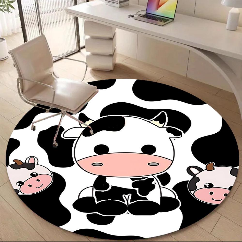 1pc Cow Print Office Round Area Rug, Under Office Chairs Bedroom Living Room Home Decor, Room Deco