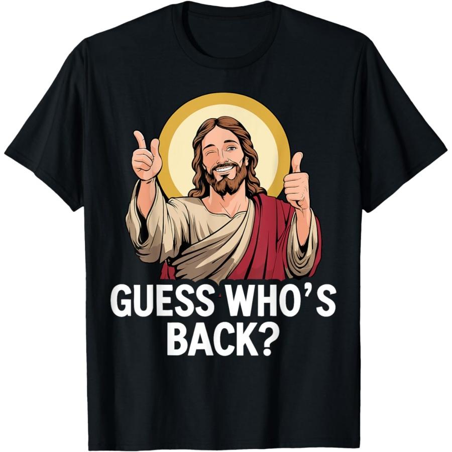 Zgadnij, kto wrócił Jezus na śmieszną religijną chrześcijańską koszulkę wielkanocną
