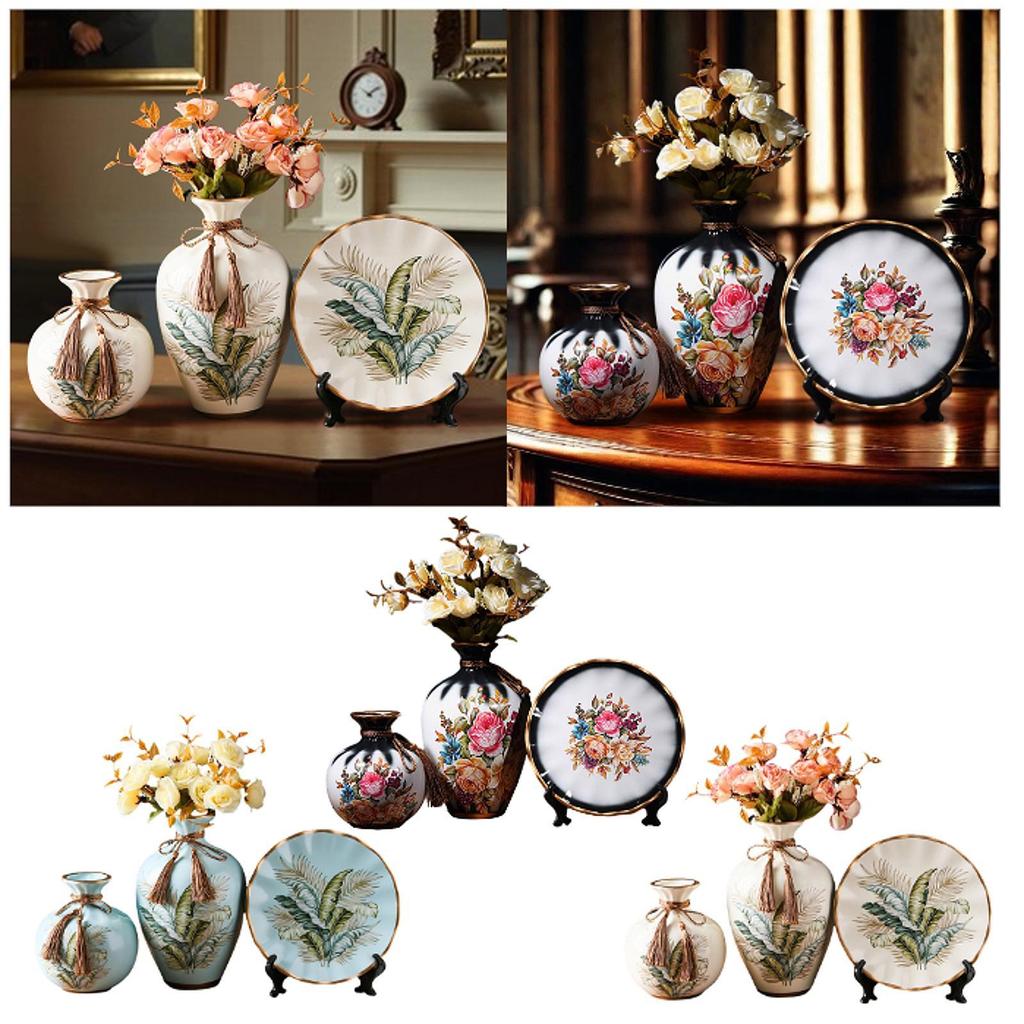 Zestaw ceramicznych wazonów na kwiaty Wszechstronne rękodzieło Dekoracyjne z okrągłą tacą na biurko Blat Dekoracja centralna Sypialnia Wystrój wiejski — kup artykuł online z bezpłatną dostawą na cały świat!