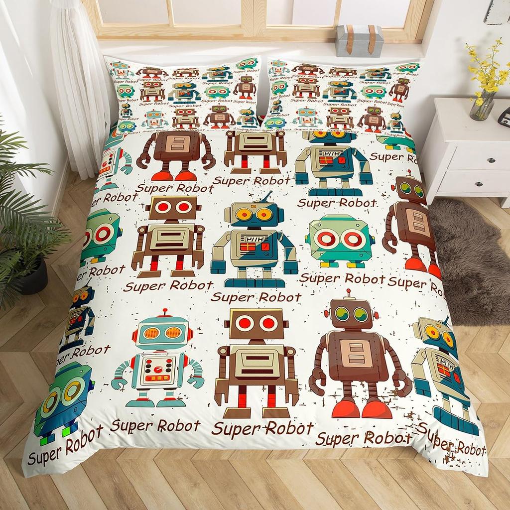 Robot Duvet Cover Set Cartoon Space Robot Bedding Set Patchwork Transformer Futuristic Machine Comforter Cover Twin Full For Boy — kup artykuł online z bezpłatną dostawą na cały świat!