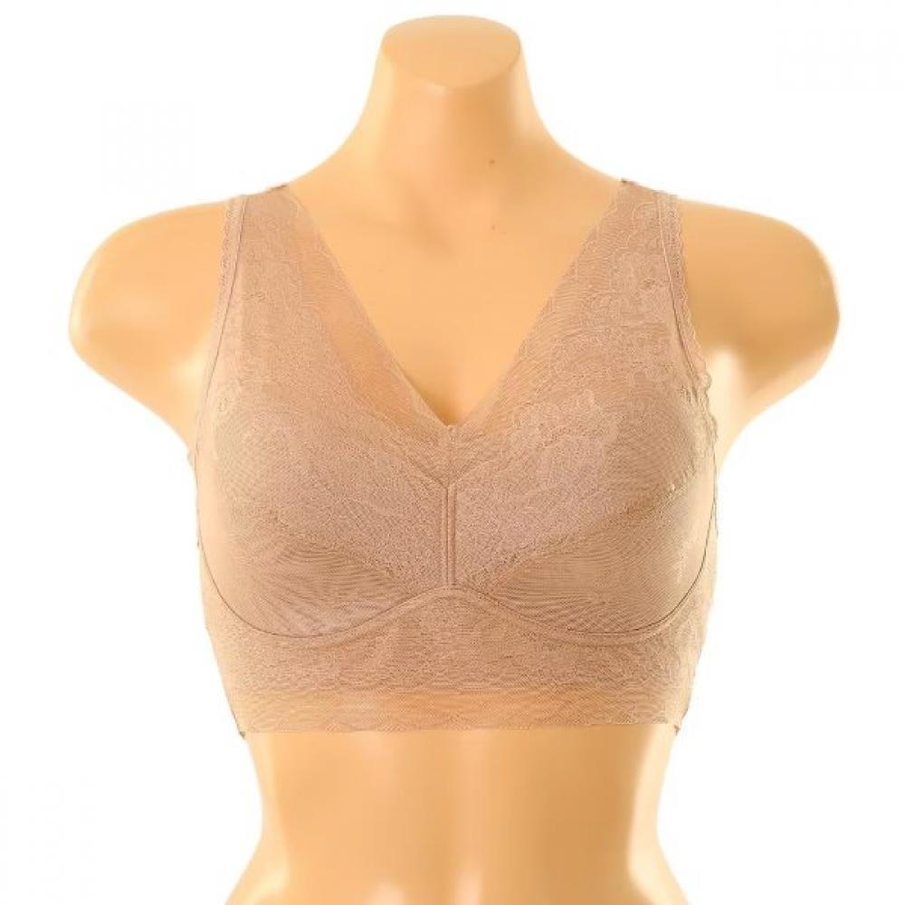 The WakoRu Running Style Flower Pattern Bralette (WLGB380R) features a lace-like subtle flower-patterned fabric.