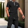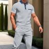 Męski Jasnoszary Zestaw Koszulka Polo i Spodnie Joggers z Waflowej Dzianiny z Kontrastowym Niebieskim Wykończeniem Casualowy Dwuczęściowy Dres — kup artykuł online z bezpłatną dostawą na cały świat!
