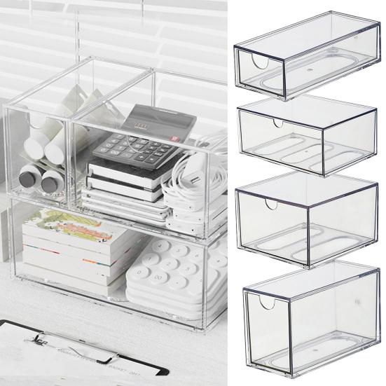 Elegancki, przezroczysty projekt: Dzięki minimalistycznej i przejrzystej estetyce, to pudełko do przechowywania na biurko doskonale wpasuje się w każde wnętrze domu lub biura?lub. Jego gładka, odporna na kurz i wodę powierzchnia jest łatwa do czyszczenia zwykłym przetarciem, zachowując polerowany wygląd, który podkreśla styl Twojej przestrzeni.