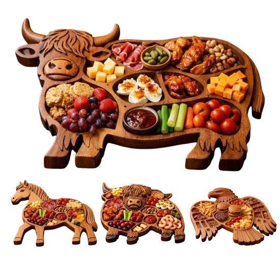 Unikalny projekt w kształcie zwierzęcia: Dzięki uroczym sylwetkom, takim jak rustykalny królik, krowa szkocka, koń czy orzeł, ten talerz do serwowania dodaje dekoracyjnego uroku Twojej kuchni lub jadalni w stylu wiejskim.. Gdy nie jest w użyciu, podwaja swoją funkcję jako efektowny element dekoracyjny na blat lub ścianę, który wzbogaca rustykalne motywy dekoracyjne.
