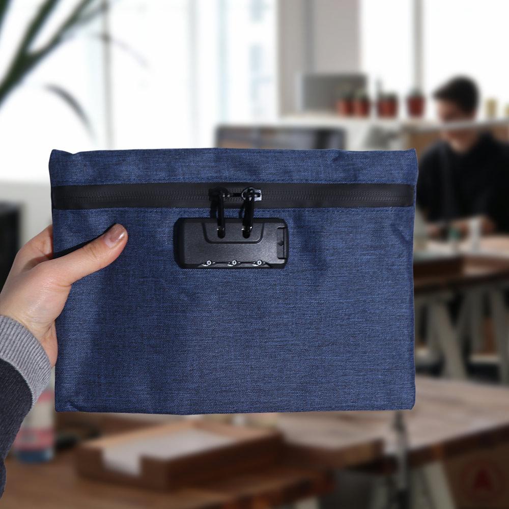 Zip Closure Money Bag with Lock Combination Lock Security Document Bag Camping