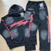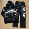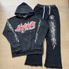Zestaw dla mężczyzn: Bluza z kapturem i długie spodnie Hell Star, prane, postarzane, luźne