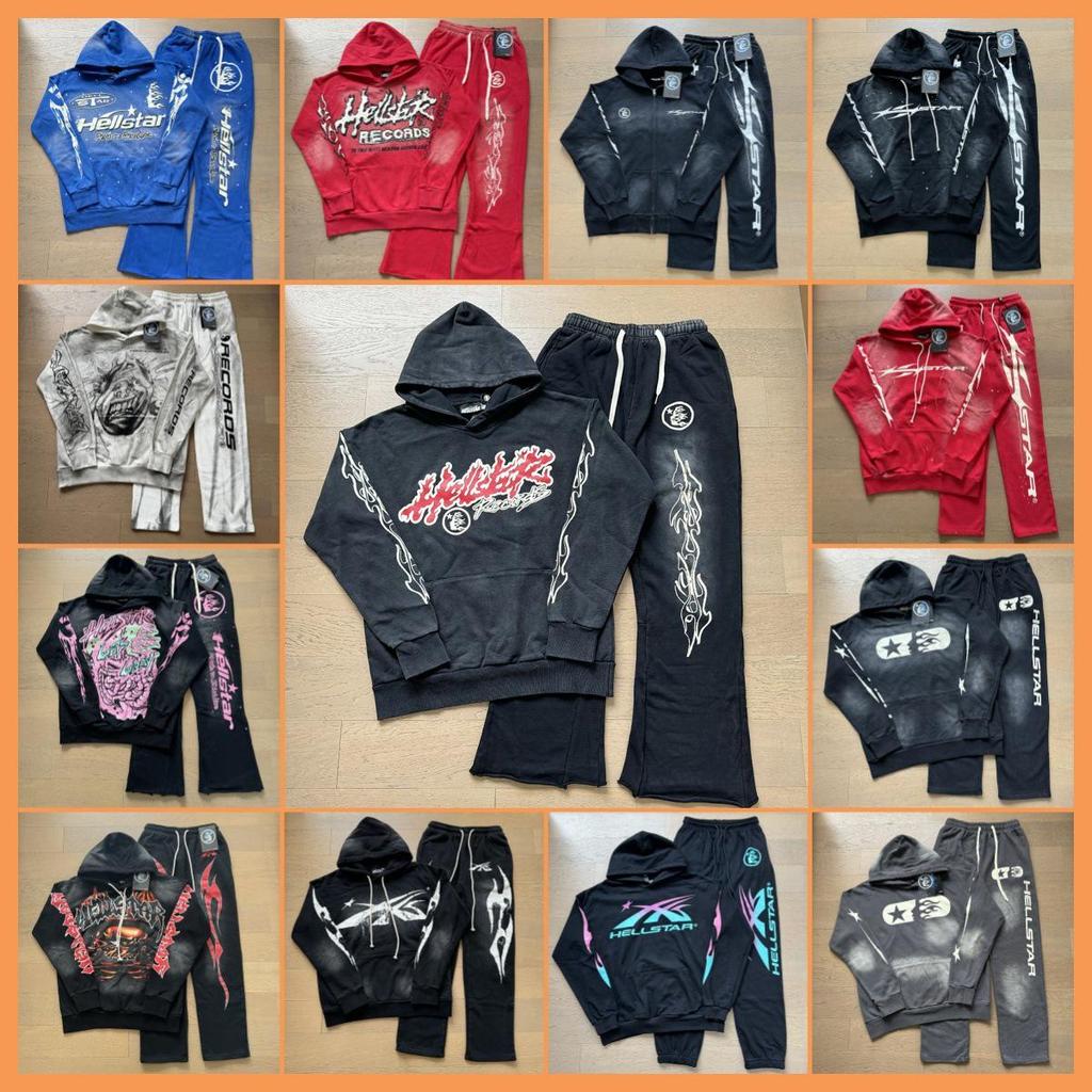 Zestaw dla mężczyzn: Bluza z kapturem i długie spodnie Hell Star, prane, postarzane, luźne — kup artykuł online z bezpłatną dostawą na cały świat!