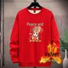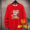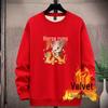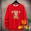 Men's Red Teen Hoodie, Year of the Horse 2026, Velvet-Lined, Autumn/Winter Junior High School Top