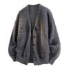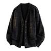 Męski sweter kardigan Retro z dekoltem V na jesień/zimę 2025 - Swobodny dzianinowy jednolity kolor Okrycie wierzchnie o luźnym charakterze.