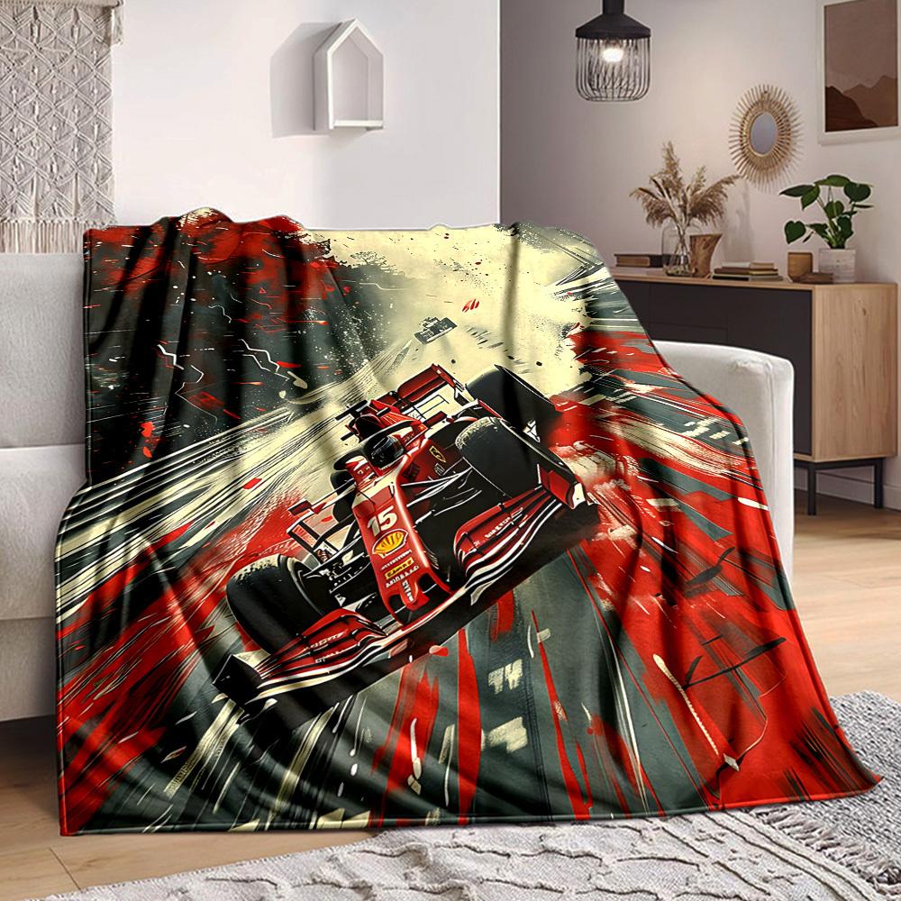 1 szt. Koc Flanelowy Wyścigowy Formuła 1 HD Nadruk Lekki Miękki Ciepły Koc na Cały Sezon do Sofy, Łóżka, Podróży, Kempingu Można Prać w Pralce