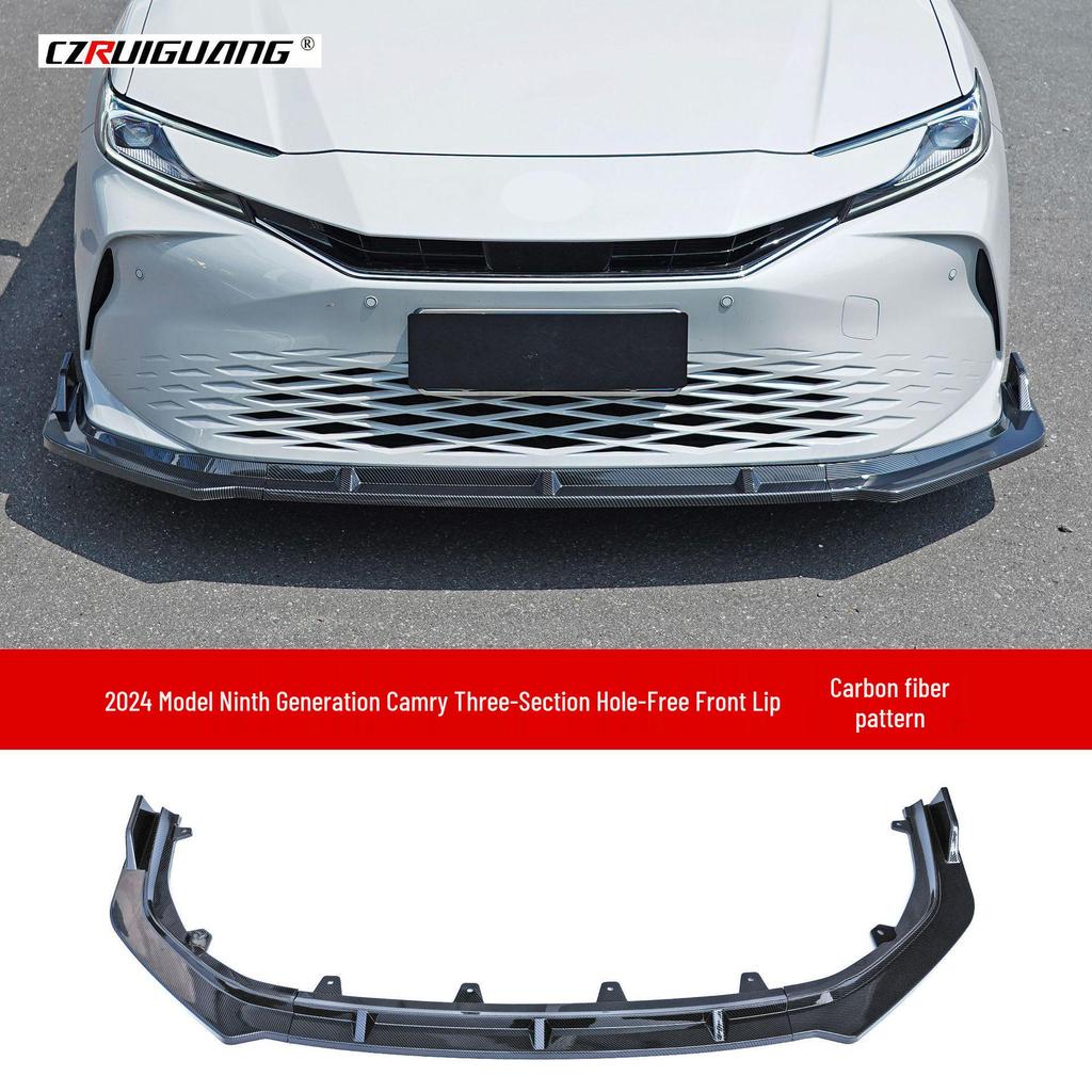 Zestaw Karoserii Przedni i Tylny do Toyoty Camry Model 24: Zawiera przedni splitter, tylny dyfuzor, progi boczne, górny spoiler, tylny spoiler oraz żaluzje