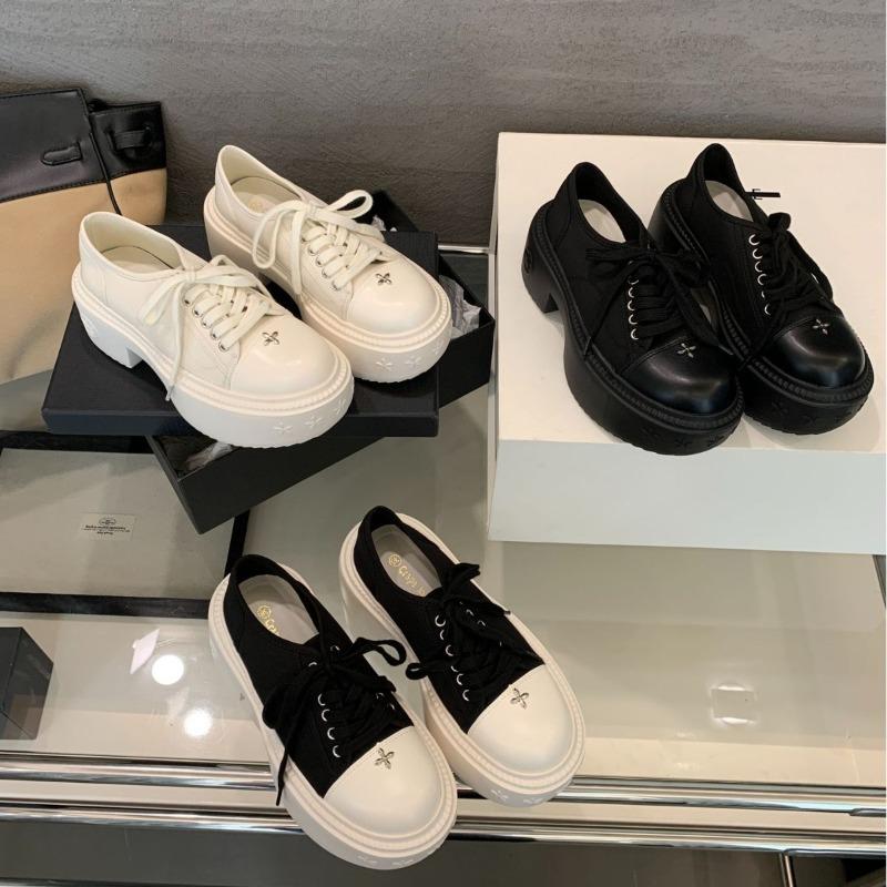 Jesienne buty płócienne na grubej podeszwie, z okrągłym noskiem, grube, codzienne, dla kobiet