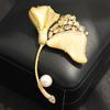 Biżuteria Wysokiej Klasy Naturalna Żółta Fritillary Ginkgo Biloba Broszka Elegancka Lekki Luksus Słodkowodna Perła Diamentowy Liść Przypinka Damska