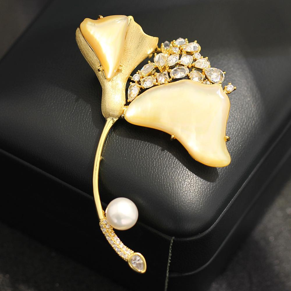 Biżuteria Wysokiej Klasy Naturalna Żółta Fritillary Ginkgo Biloba Broszka Elegancka Lekki Luksus Słodkowodna Perła Diamentowy Liść Przypinka Damska — kup artykuł online z bezpłatną dostawą na cały świat!