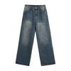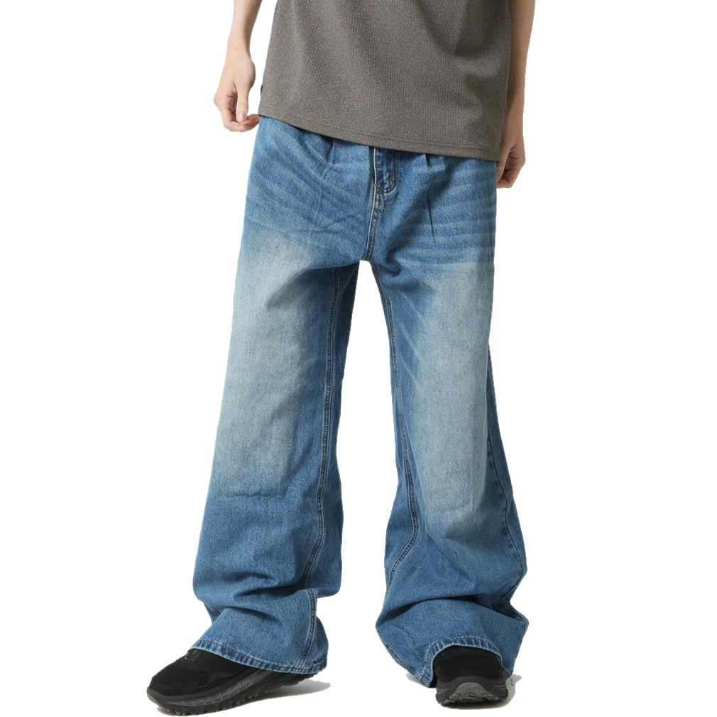 Arcade Men's Mopping Denim Pants, Wide-leg Jeans with Tucks, Loose Straight Fit, Flared Denim Pants, Bootcut, Vintage Wash, Street Style, Size M, Blue