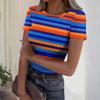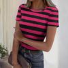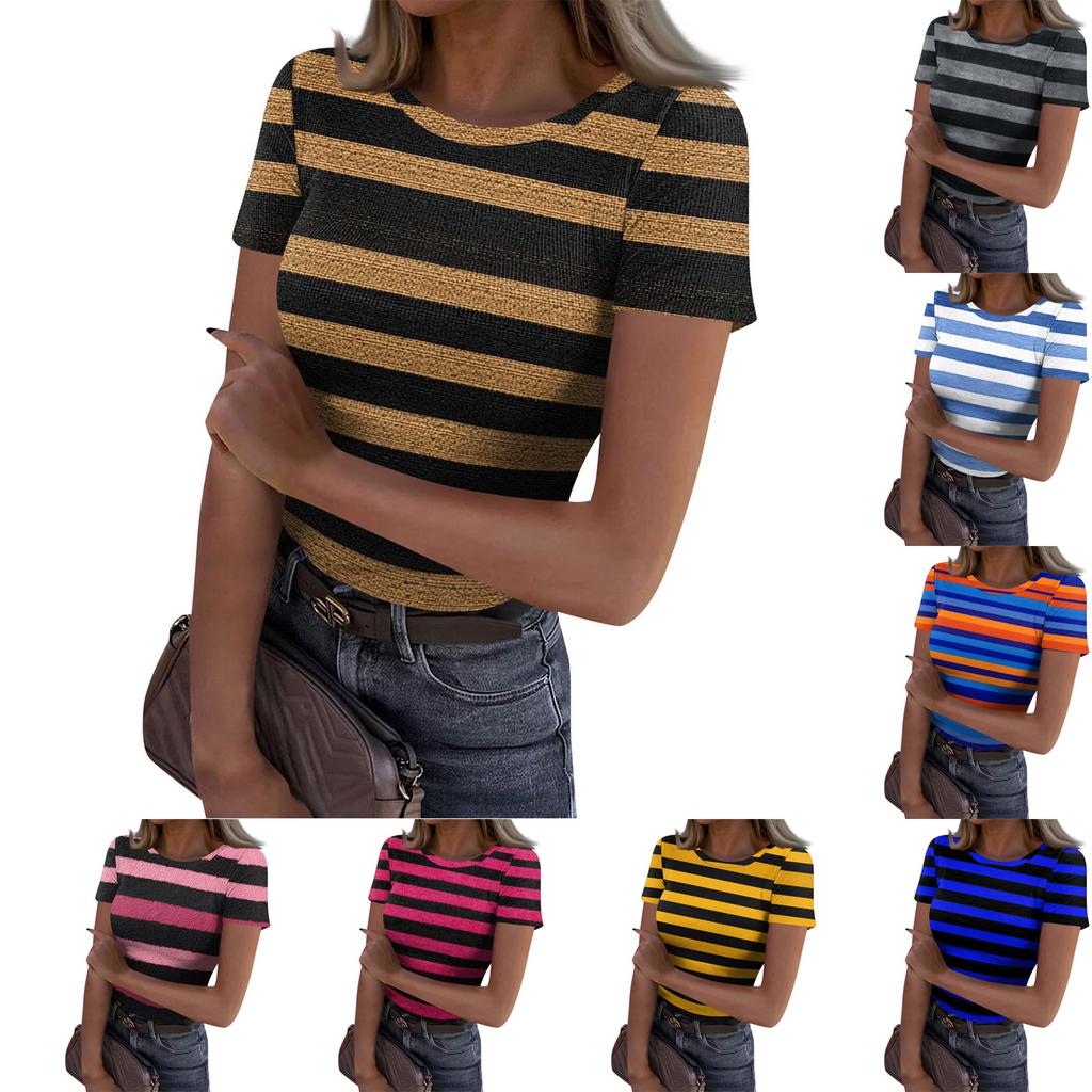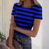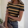 Damski casualowy modny top z okrągłym dekoltem, w paski, z krótkim rękawem, prążkowany — kup artykuł online z bezpłatną dostawą na cały świat!