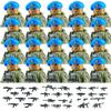 20PCS Military Army Figures Building Blocks SWAT Ghost Commando US Russia Special Forces Soldier Weapons Shield Belt Bricks Toys