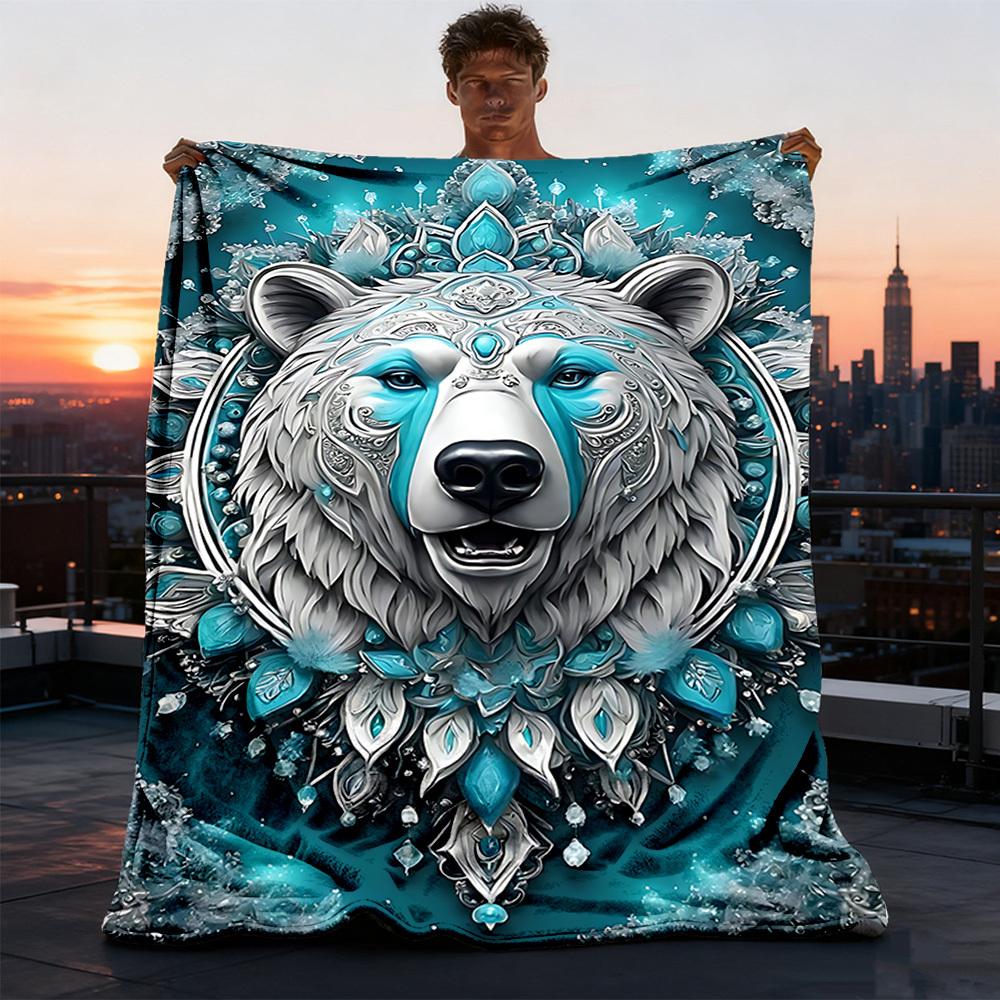 1pc Polar Bear Mandala Throw Blanket Polyester Fiber, Lightweight Flannel, Soft & Warm, All Season Use for Outdoor, Camping Digital Print