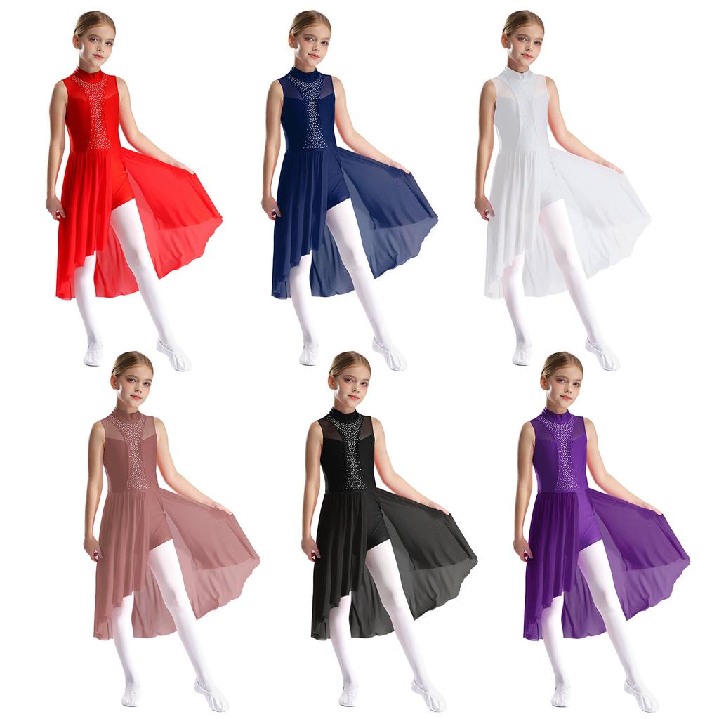 Dziecięca dziewczęca szyfonowa sukienka baletowa bez rękawów z golfem wycięcie z tyłu rozcięcie z boku asymetryczny dół błyszczące sukienki taneczne z kryształkami — kup artykuł online z bezpłatną dostawą na cały świat!