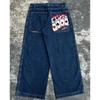 ZYLLO Luźne jeansy Y2K Ubrania Męskie Damskie Harajuku Hip Hop Haftowane Vintage Niebieskie Luźne Jeansy Niskie w Pasie Szerokie Nogawki