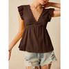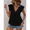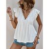 Damskie Nowe Modne Topy Wiosenno-Letnie z Wycięciem V i Falbankami, Krótki Rękaw — kup artykuł online z bezpłatną dostawą na cały świat!