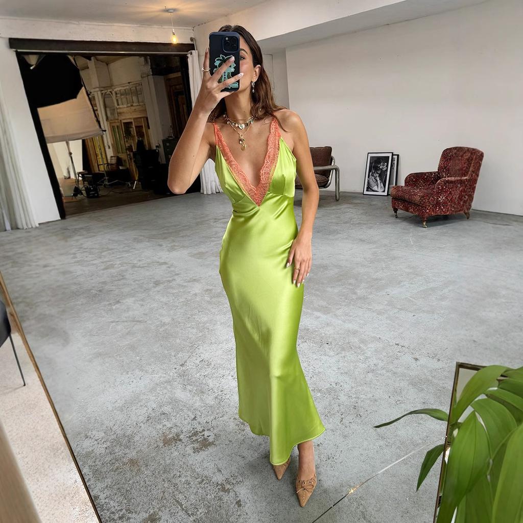 Koronkowa sukienka na ramiączkach Europejska i amerykańska letnia nowa koronkowa seksowna sukienka na ramiączkach z dekoltem V