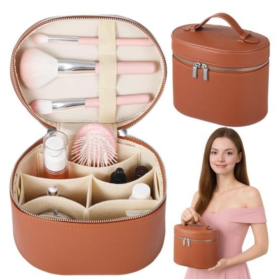 Wewnątrz wyjmowana przegródka z wieloma kieszeniami umożliwia uporządkowane przechowywanie butelek, szminek i biżuterii bez bałaganu.. Dwukierunkowy zamek błyskawiczny otwiera się szeroko dla wyraźnej widoczności, uzupełniony solidnymi uchwytami dla łatwego chwytania i szybkiego wyjścia.. Wzmocnione szwy i filcowa podszewka zwiększają trwałość i dodają miękki, elegancki akcent.. Lekka i przenośna, ta kosmetyczka idealnie mieści się w bagażu podręcznym, torebkach lub na toaletkach, idealna do połączenia makijażu, przyborów toaletowych i akcesoriów w jednym kompaktowym rozwiązaniu.