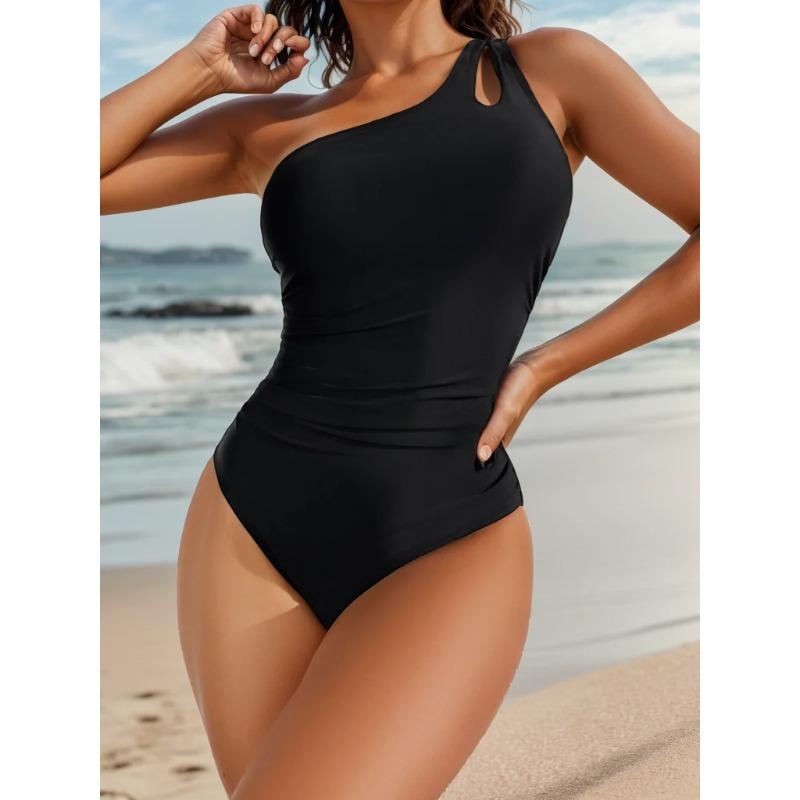 2026 Solid Single Shoulder Push Up Swimsuit High Whist Swimwear For Women Backless One Piece Beach Bathing Suit — kup artykuł online z bezpłatną dostawą na cały świat!