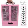 Pink Wardrobe with 10pcs Hangers Playset Doll Accessories Fashion Toys Fold-out Rack Portable Closet Birthday Christmas Gift