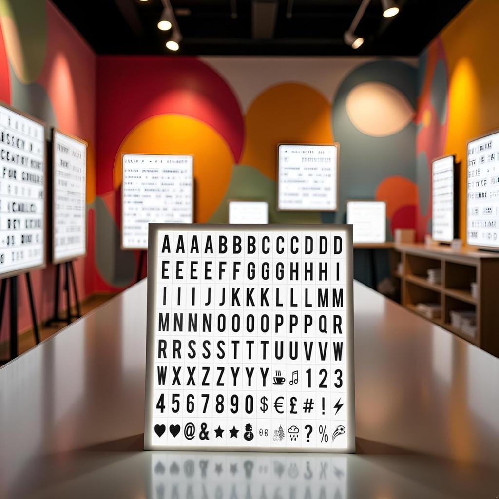 A Set 104Pcs Black Cinematic Lightbox Replacement Letters and Numbers Signs for A4 Light Up Letter Box Sign Message Board,Message Signs,Presentation