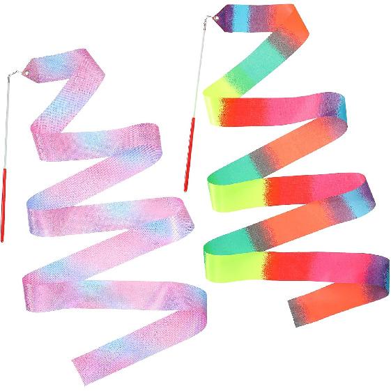 2 Pcs Dance Ribbons for Kids Gymnastics Ribbon Dancer with Wand Sparkling Dance Stuff Gymnastics Stuff Streamer Twirling Dancing Ribbons Essentials