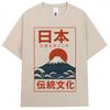 Japoński Styl Fala Hokkaido Vintage Koszulka Mężczyźni Kobiety Harajuku Moda Wysokiej Jakości Koszulki Oversize Bawełniane Letnia Koszulka