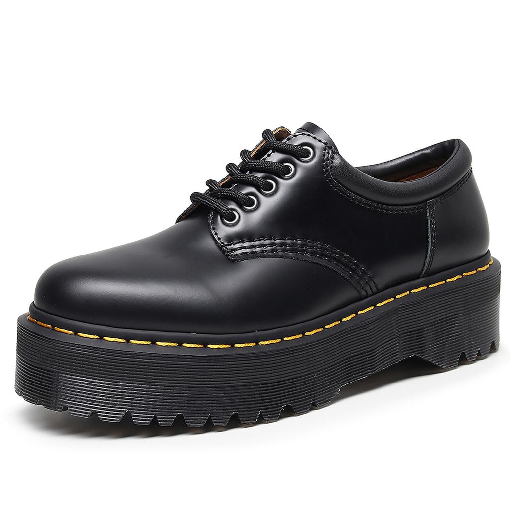 Gruby podeszwa dziura punkowe małe skórzane buty niskie, skóra naturalna brytyjskie okrągły nosek codzienne studenckie muffin podeszwa krótkie botki