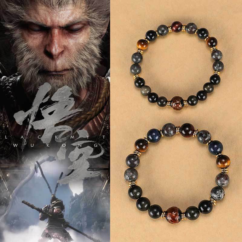 Black Myth Wukong Flame Stone Obsidian Beaded Couple Bracelet Original Design Yellow Tiger Eye Bracelet Explosive