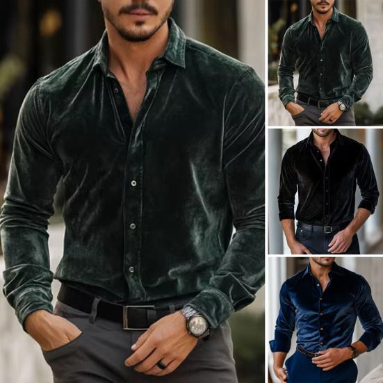 Męska Koszula Aksamitna z Długim Rękawem Zapinana na Guziki Kołnierzyk Gładki Kolor Casualowa Formalna Koszula na Imprezy Randki Biuro — kup artykuł online z bezpłatną dostawą na cały świat!
