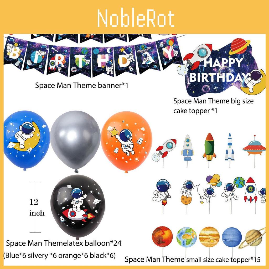 Colorful Astronaut Rocket Space Theme Kids Birthday Party Decoration Set Paper Scene Props Mix 16 Balloons