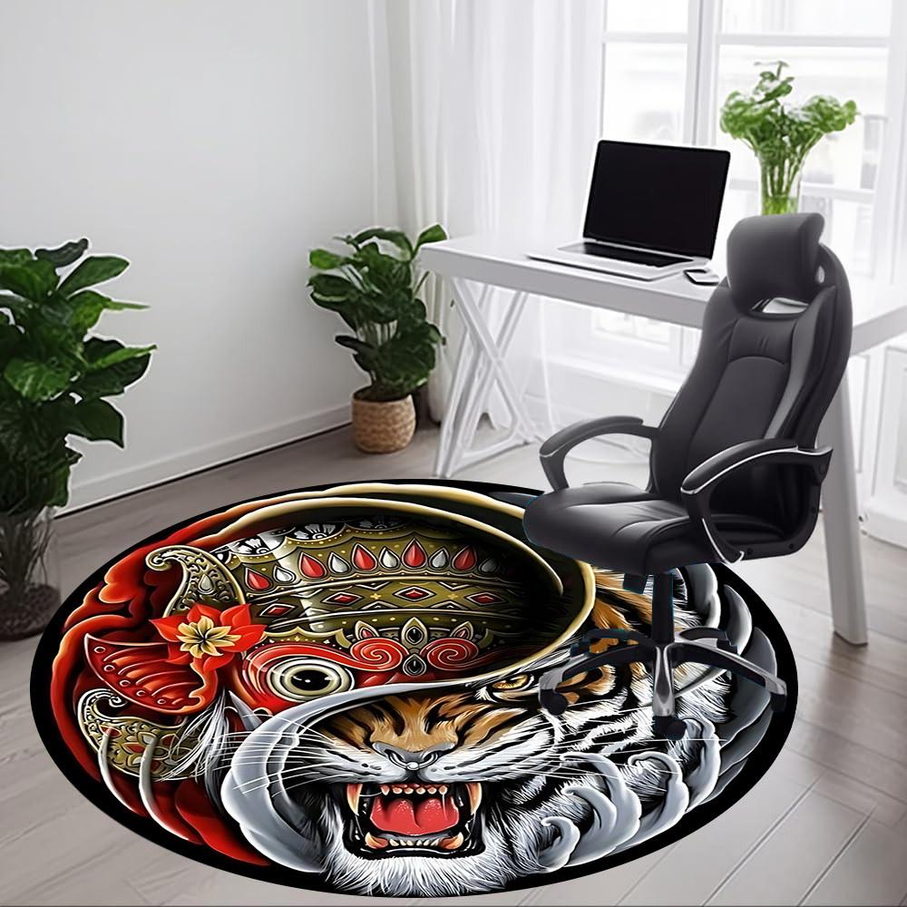 1pc Tiger Mask Chair Carpet for Office, Round Non Slip Durable Large Size Office Carpet, Suitable for Office