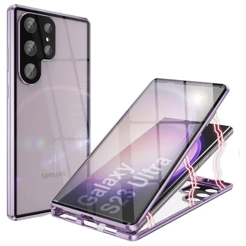 Dwustronne Szklane Metalowe Magnetyczne Etui Dla Galaxy S26 S25 S24 S23 S22 S21 Ultra Plus Pokrowiec Ochronny Dolna Zaczepka Blokująca