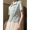 Demana T-shirt w stylu chińskim z bufiastymi rękawami