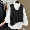 Damski dwuczęściowy zestaw: koszula z klapami i długim rękawem oraz nieregularny kamizelka