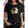 Damska Koszulka z Nadrukiem Królika Wyciągającego Rzodkiewkę Okrągły Dekolt Krótki Rękaw Wiosna Lato Jesień Codzienna Stylowa Wygodna Można Prać w Pralce Góra