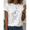 Damska koszulka w rozmiarze europejskim z rysunkiem linii i nadrukiem wzoru kobiecego, biała koszulka z krótkim rękawem, casualowy okrągły dekolt — kup artykuł online z bezpłatną dostawą na cały świat!