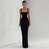 Nowość Wiosenna Jednolity Kolor Seksowna Modna Bez Rękawów Dopasowana Plisowana Kwadratowy Dekolt Sukienka Owijana na Biodra
