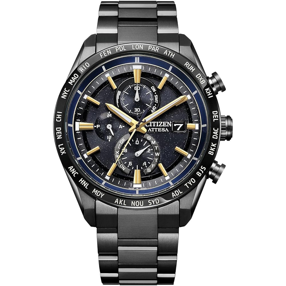 [Model z limitowanej edycji inspirowany nowym pojazdem do zaopatrzenia stacji kosmicznej JAXA, HTV-X] Citizen ATTESA nadal rozwija następną generację dzięki tytanowi. Czarna tarcza, mieniąca się drobnym brokatem, przywołuje obraz kosmosu.. Żółtozłote wskazówki i indeksy, inspirowane kolorem obudowy HTV-X, emanują godną obecnością. Limitowany do 1300 sztuk na całym świecie.