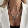 Hip-Hop Geometric Acrylic Black Diamond Pendant Necklace, Fashionable Beaded Wax Thread Collarbone Necklace