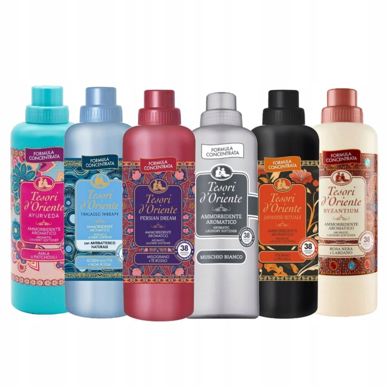 Tesori d'Oriente to płyn do płukania tkanin, który zapewnia wyjątkową miękkość i trwały, harmonijny zapach. Dzięki jego formule ubrania są przyjemne w dotyku, łatwe do prasowania i zachowują świeżość na długo.